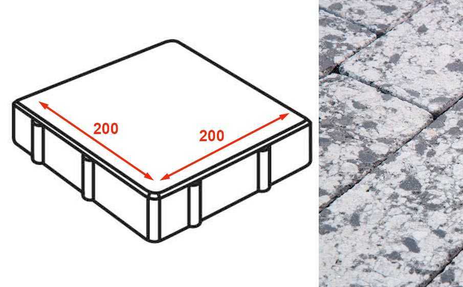 Плита тротуарная Готика Granite FINERRO, квадрат, Диорит 200x200x80 мм